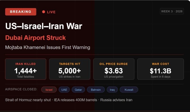US-Israel-Iran War Live Updates: Missiles Hit Dubai, Mojtaba Khamenei Issues First Warning, Global Fuel Crisis Deepens
